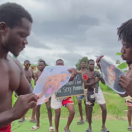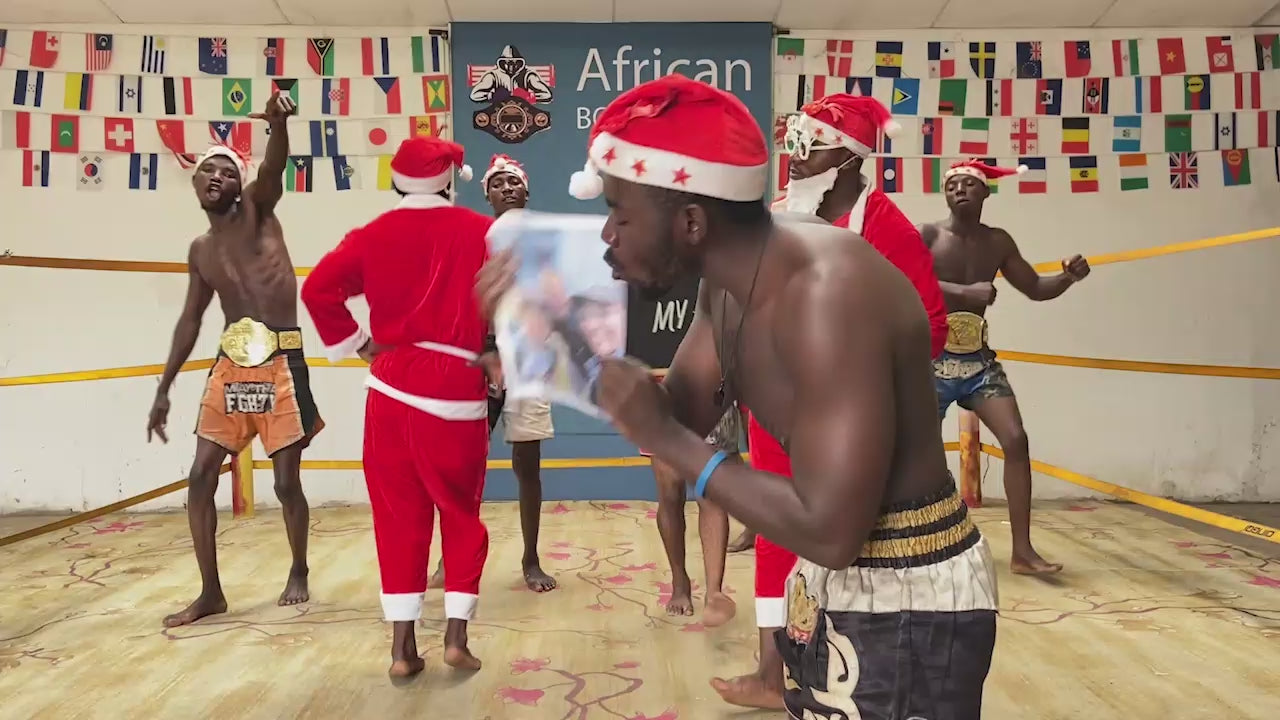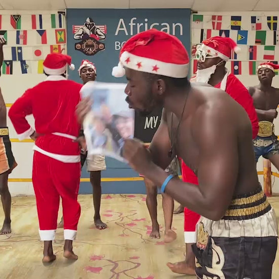 The African Boxing Team will sing, dance, and extend warm greetings to you. They can recite up to 20 words of your choice and display up to 15 words on the board. Additionally, you have the option to include up to four images to be showcased in the video.